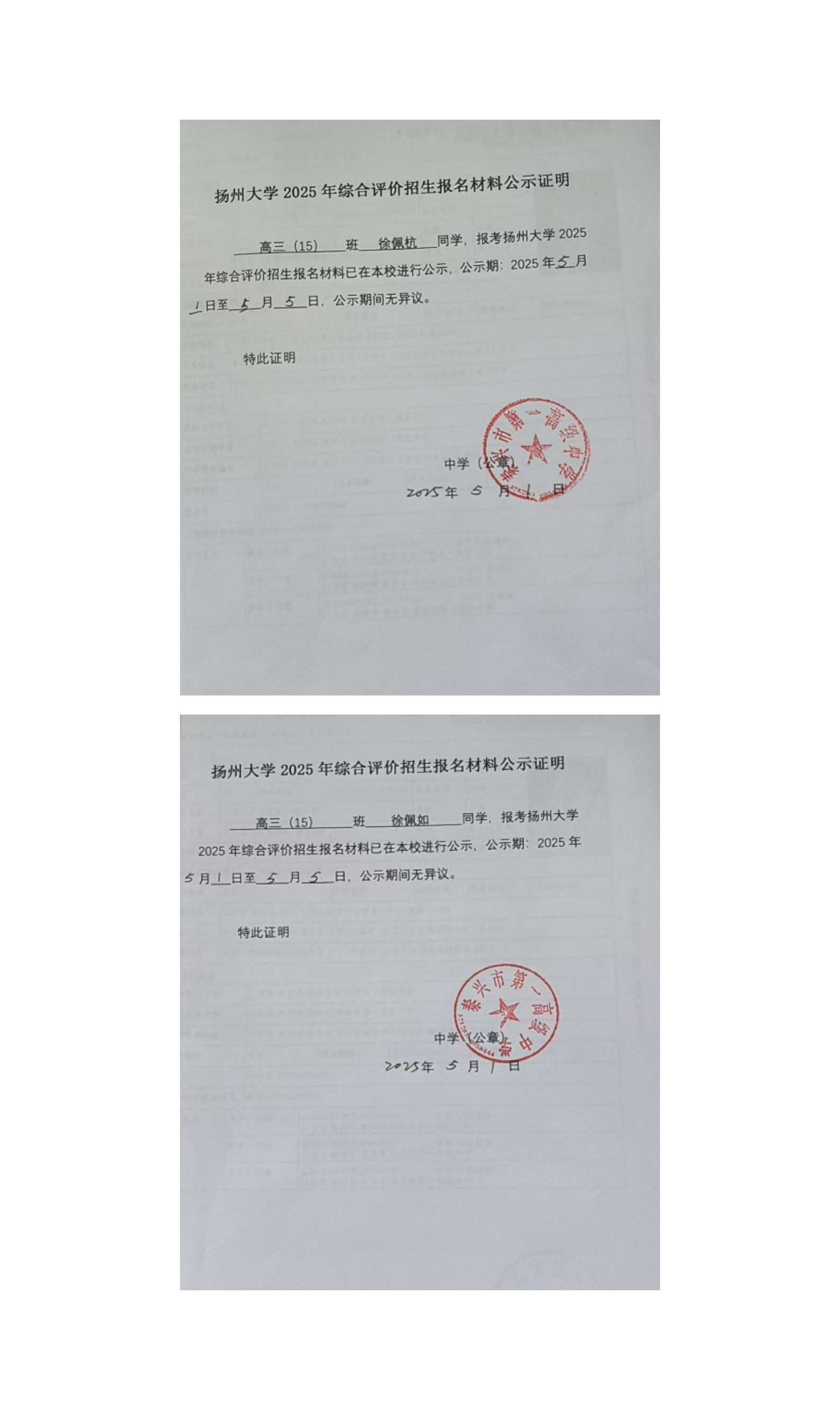 扬州大学2025年综合评价招生报名材料公示(一)
