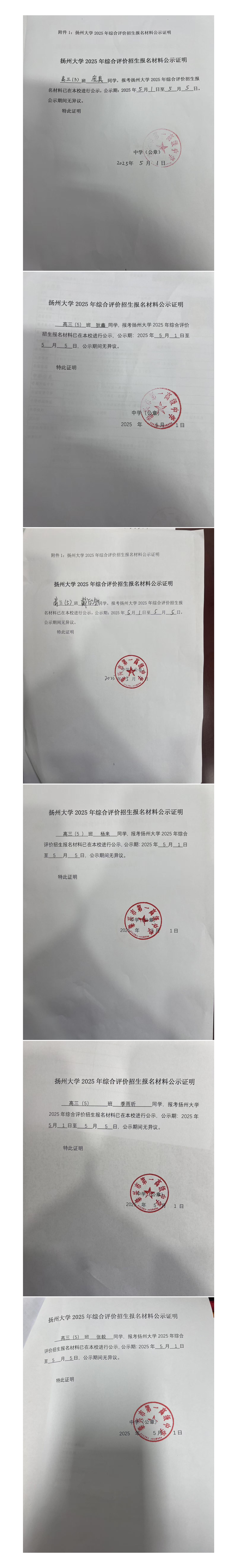 扬州大学2025年综合评价招生报名材料公示(五)