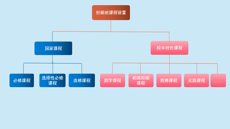 在高质量开设国家课程的基础上,学校开发并实施具有“创新班”特色的课程体系,从塑造具有健全人格和卓越创造力的优秀人才的目标出发,分层培养,满足个性化发展需求。
