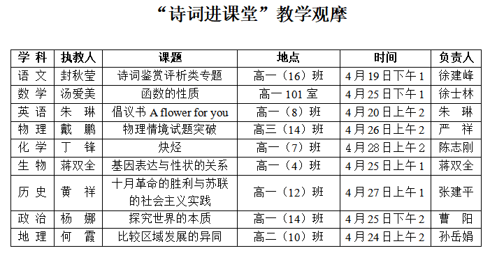 (2)4月10前,教研组长将观摩课的内容和上课安排报送教务处。