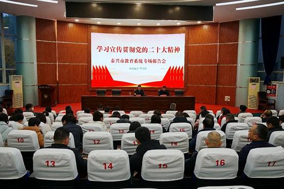 宣讲会上,李和章从党的二十大的主题、主要成果,过去5年的工作和新时代10年的伟大变革,马克思主义中国化时代化,中国式现代化,全面建设社会主义现代化国家的目标任务,坚持党的全面领导和全面从严治党,应对风险挑战等七个方面,对党的二十大提出的新思想新论断、作出的新部署新要求进行了系统宣讲和深入阐释。此外,他结合泰兴教育实际,阐述了二十大报告中关于教育的重要内容,激励全体教师用实际行动践行“办人民满意教育”。