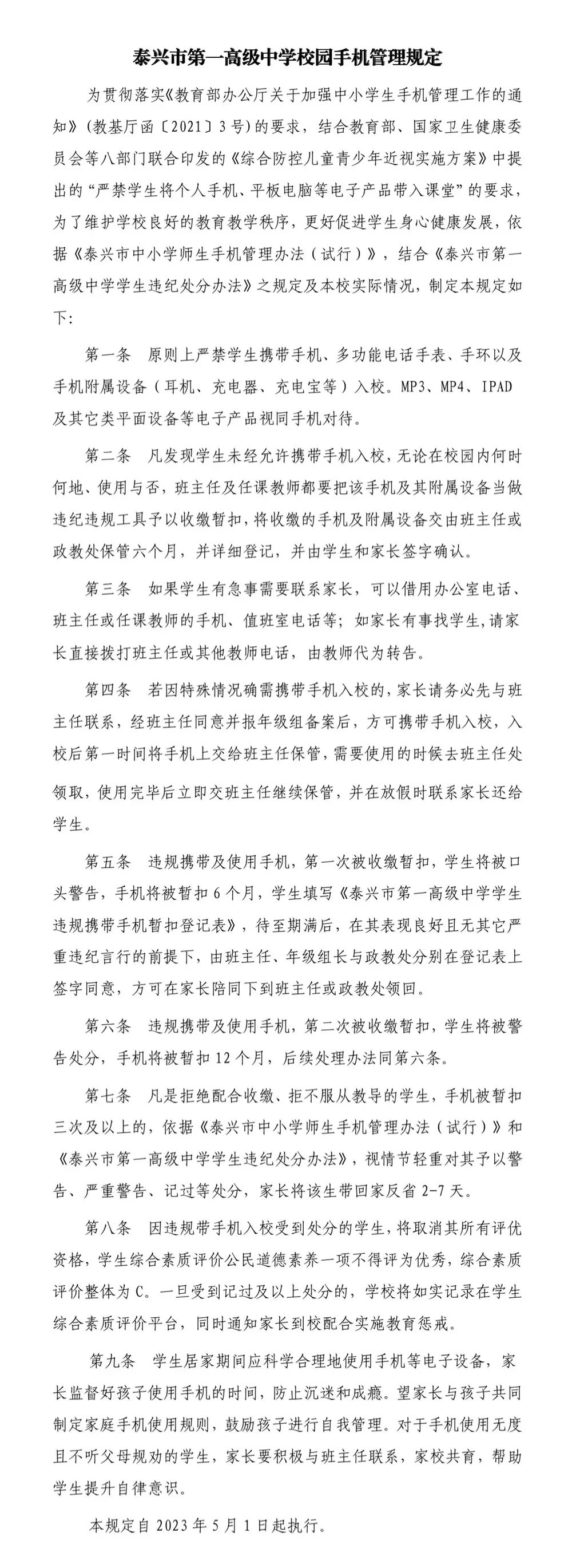 一、作为家长,希望孩子学会控制和调节自己的情绪和举止行为,自觉遵守学校的相关规定。针对手机的使用,我们也要让孩子培养自我管理的能力,增强自制力。如果我们永远在替孩子关手机,孩子的自律能力就不能得到发展和提高。