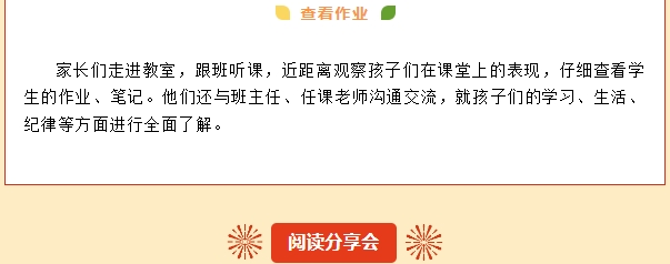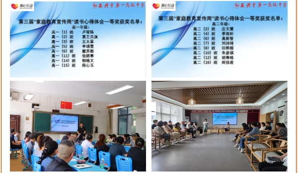 高一、高二分年级举行家长阅读分享会。作为“家庭教育宣传周”的环节之一,学校政教处向家长推荐《非暴力沟通》一书,并向家长征集读书心得,共评选出优秀读书心得16篇并现场颁奖。获奖家长从阅读体验、沟通技巧、亲子关系、问题反思等角度进行分享。家长们表示,教育是与孩子一起慢慢成长的美好旅途,家长不只是一个角色,更是一种技能,因此,做学习型家长、智慧型家长是新形势下的必然要求!