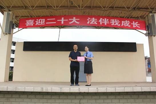 讲座结束,张敏副校长向虞娟主任颁发法治副校长聘任证书,并表示将以此为契机,将学生的法治教育常抓不懈。