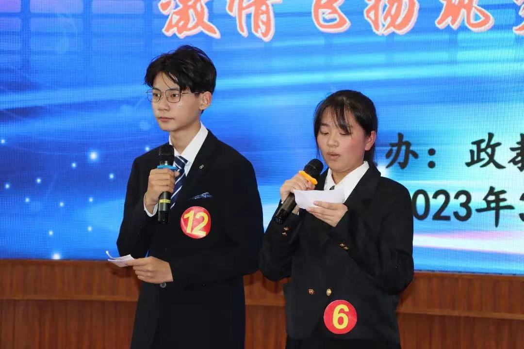 首轮比拼中,选手们大方介绍自己、生动演绎诵读,围绕大赛主题赞颂党的奋斗历程,传颂“四敢”精神,讴歌一高30周年风雨兼程,融情于声,句句传情,赢得了在场观众的热烈掌声。