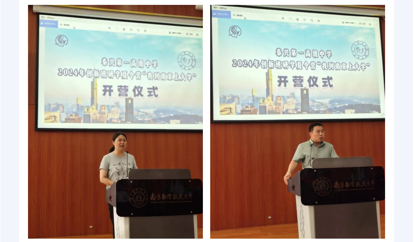 在南京航空航天大学,《南京日报》社教育专栏编辑姜静老师致欢迎辞,并宣布夏令营正式开营。