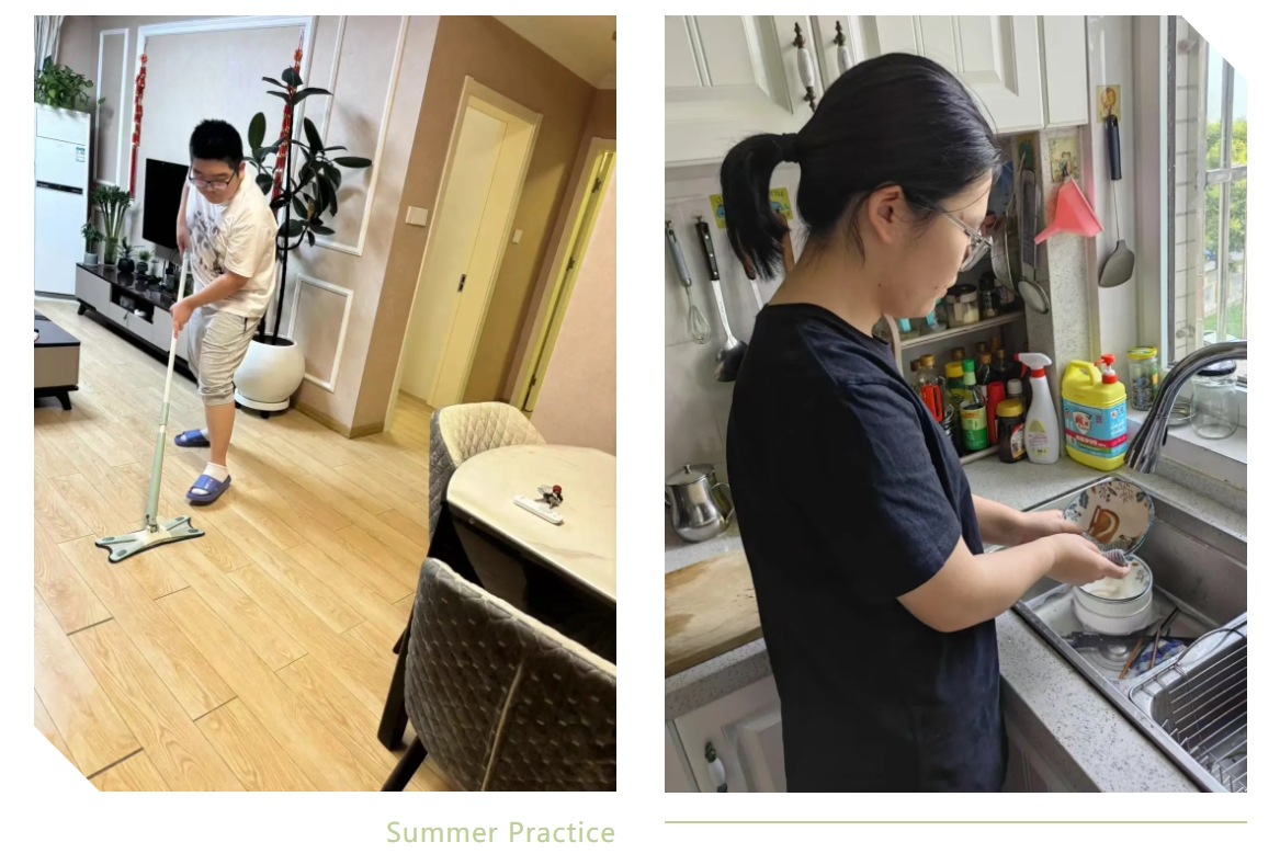 “人生天地间,劳动最为先”。同学们在暑假里积极参与家务劳动,用辛勤的双手为家庭贡献着一份力量。大家体验劳动之趣,收获亲情之乐,向家人展示着自己的独立与成长。