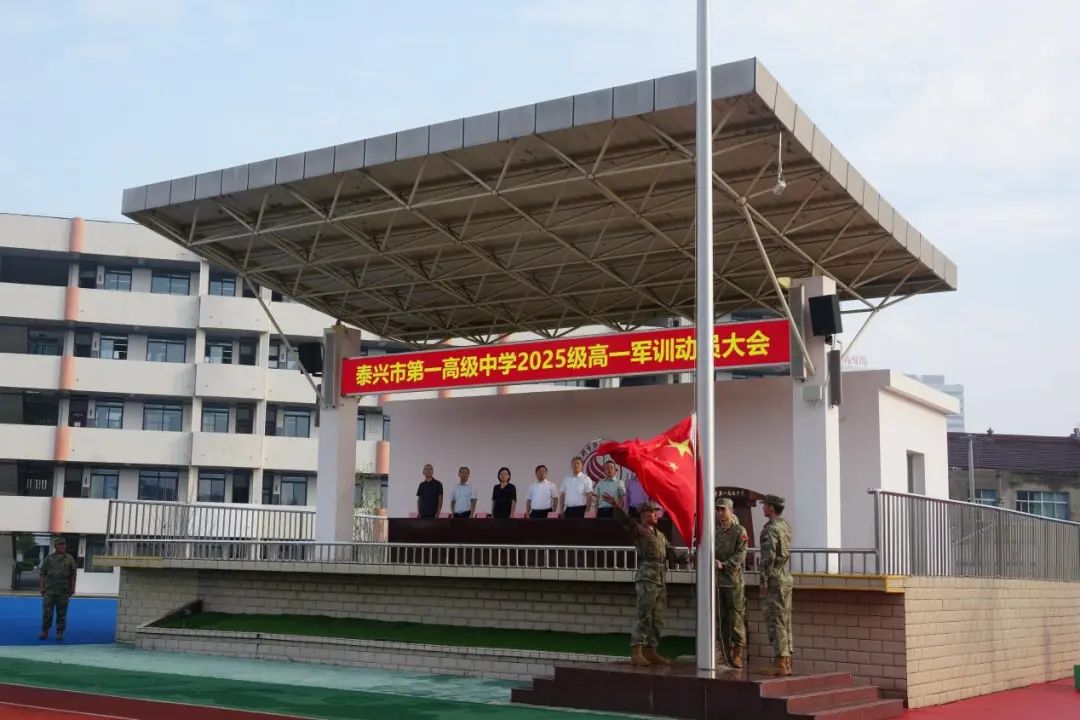 伴随着雄壮激昂的国歌声,五星红旗冉冉升起,泰兴一高军训动员大会正式拉开帷幕。