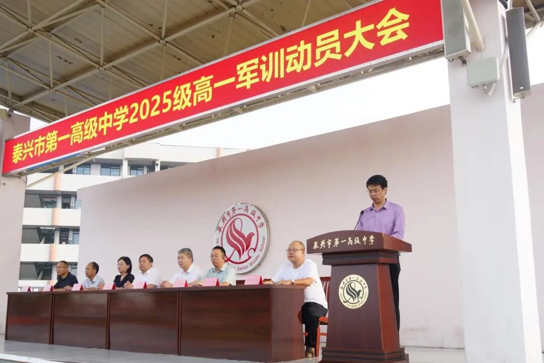 骄阳迷彩映军辉,建军节里启征程。8月1日上午,泰兴一高2025级高一新生军训动员大会在学校操场举行。校党委书记、校长钱凯,副校长曹军、顾琴、张敏、杨凯,政教处主任张永丰,高一年级组组长燕亚新出席。大会由高一年级组副组长鞠天龙主持。