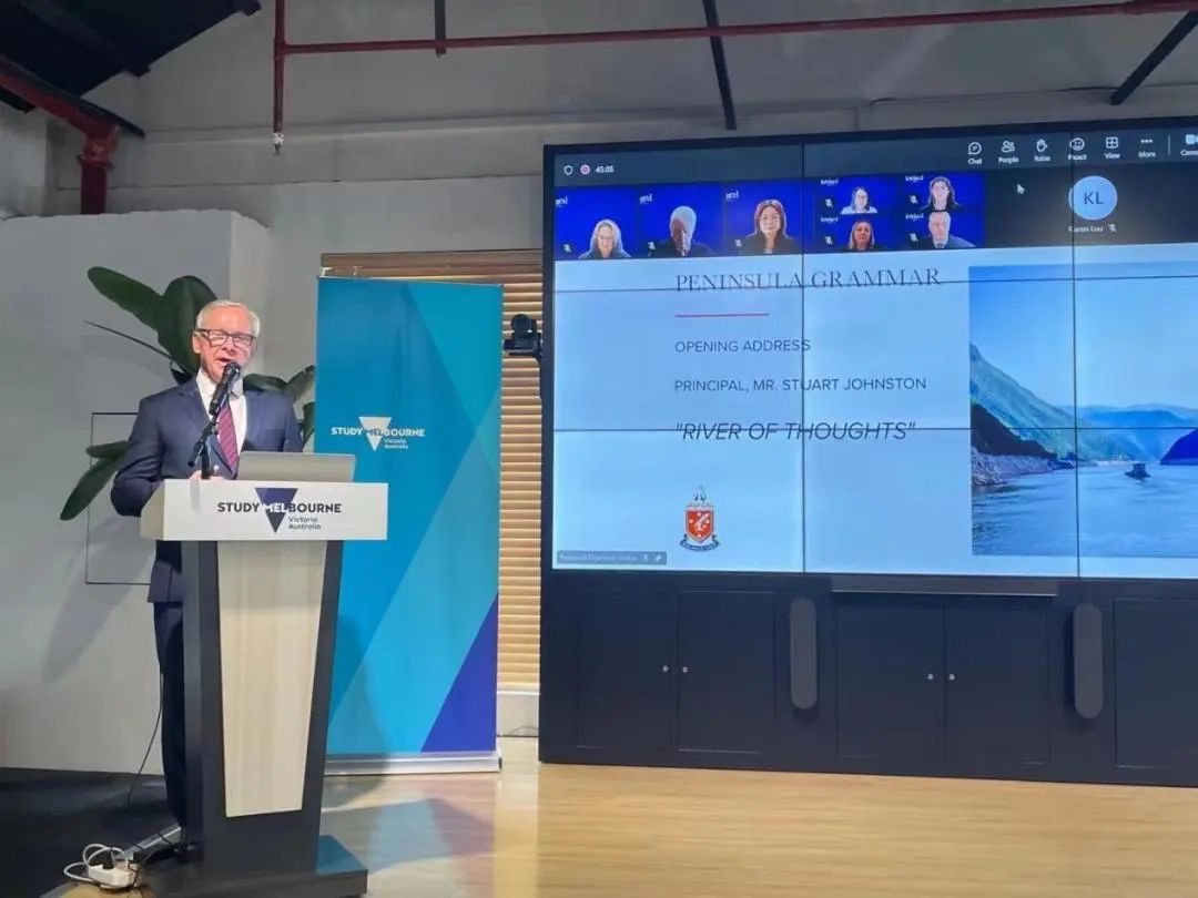澳大利亚半岛文法学校校长Mr Stuart Johnston作题为《RIVER OF THOUGHTS》的演讲,他引用古希腊哲学家赫拉克利特的名言“人不能两次踏进同一条河流”,阐明教育之河急速奔流,如果老师停滞不前、不思改变,就有可能迷失在它的洪流中,失去新机会。作为教育者,学生迫切需要我们来增强他们的决心——让他们为生活做好准备,而不仅仅是为上大学做准备。