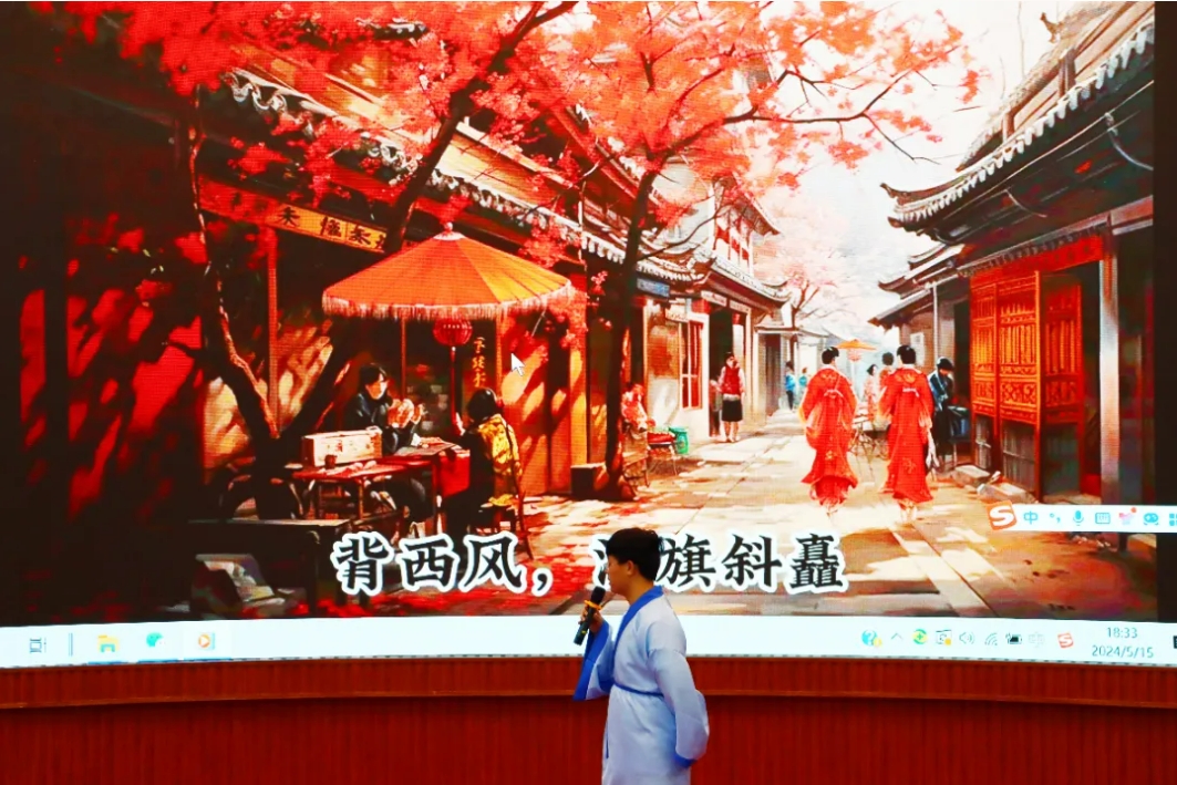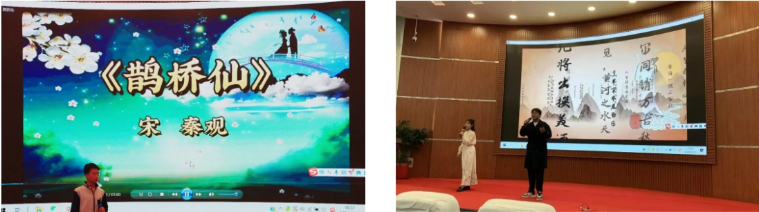 字字铿锵诵美篇,郁郁诗风扑面来。5月15日晚,语文经典诗词朗诵比赛在校报告厅举行。进入决赛的15组选手声情并茂地演绎了从唐诗宋词到近现代诗歌的诸多名篇,开启了一场浸润着诗香的精彩对决。一诗一世界,一词一片天,《念奴娇·赤壁怀古》的雄浑壮阔,《桂枝香·金陵怀古》的风光旖旎,《满江红》的激昂悲壮,《将进酒》的豪放不羁,《声声慢》的哀婉凄凉,《再别康桥》的柔美优雅,《万疆》的盛世景象……给予了现场观众跨越时空的中华文化之美的沉浸式体验。