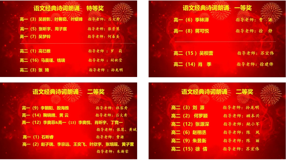 此次的中、英文诗词诵读比赛也是学校积极落实省教育厅《关于举办江苏省第八届中小学艺术展演活动的通知》精神的举措之一,努力营造积极向上的校园文化氛围,切实践行以美育人、以美化人、以美培元的理念。同学们在诵读中加深了对诗词作品的理解,也在其中感悟人生哲理、提升自我修养,在欣赏美、创造美的同时,提升审美情趣,实现德育、智育、美育等的全面发展。