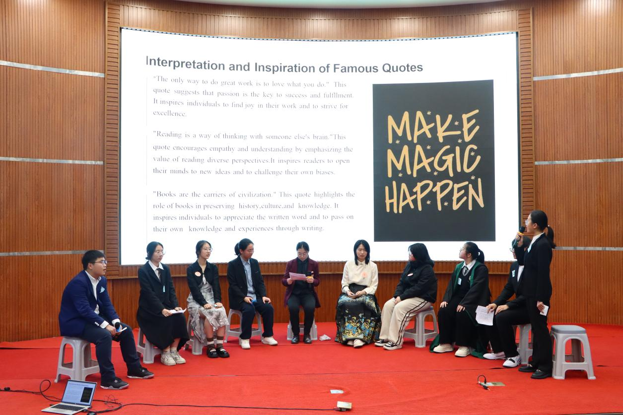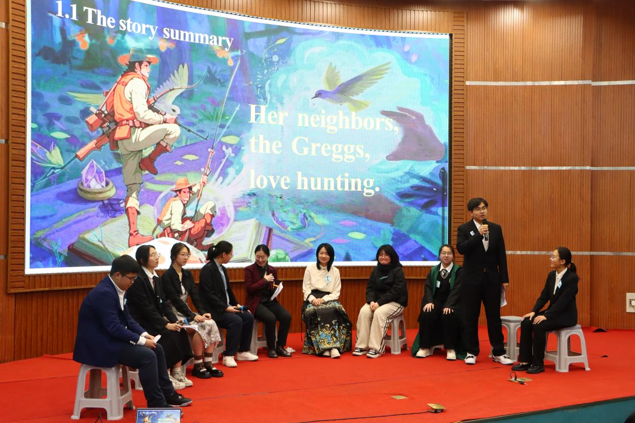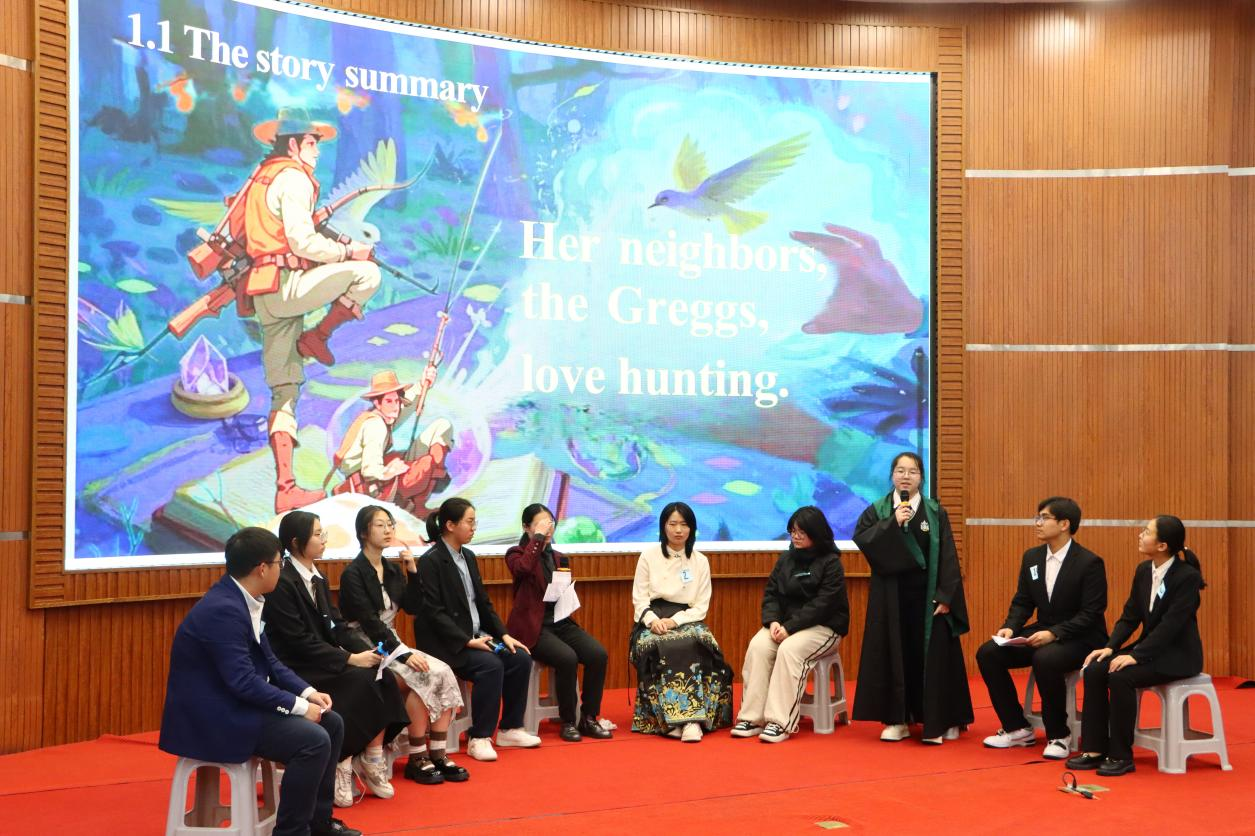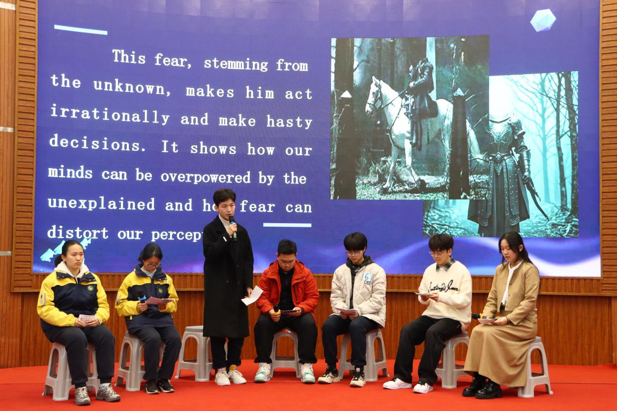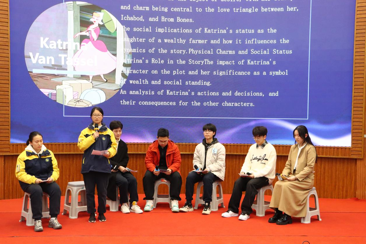 高二年级的选手深度钻研《沉睡谷传奇》的文本内涵,从多元视角解读其中的叙事奥秘。跌宕起伏的情节在同学们的精彩演绎下完美重现,对人物的剖析由细微之处层层深入,群像解读借多个维度立体呈现。随着故事的神秘面纱被逐步揭开,复杂人性与深刻哲思在光影交错间逐渐清晰。现场观众仿若穿越时空,沉浸于经典文学的奇妙世界,在思想的交流碰撞中,与文学经典实现了跨越时空的共鸣。