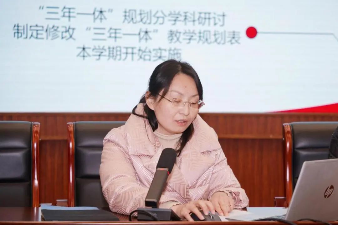 顾琴副校长首先感谢教研组长、跨学科教研组长、备课组长对学校教学工作的辛苦付出,并对“主题式研讨”和集体备课作了精细化的指导。她强调:研讨课要开展“微”研讨,找到“好”方法,因此,研讨课要有主题,开展系列化研究;研讨课要有示范性,成果要有应用性和推广性;备课组长要全程介入,教研组长要长效跟踪。她说,集体备课要成为解决“真”问题、进行“真”学习的平台:要以“问题”为导向;要遵循规范流程;要提前酝酿;要重在教学方法的探究;要与“一日一研”结合。同时,她梳理了本学期教学过程中存在的主要问题,并结合《中国高考报告(2024)》中的相关精神提出建议:要讲全讲透教材,总结方法规律;要加强教学管理,提高学习效益;要优化作业设计,提高训练质量。最后,她布置了包括反思和完善《“三年一盘棋”整体教学规划》、筹划春学期校本教学案编写、规划春学期研讨课选题等在内的相关工作。