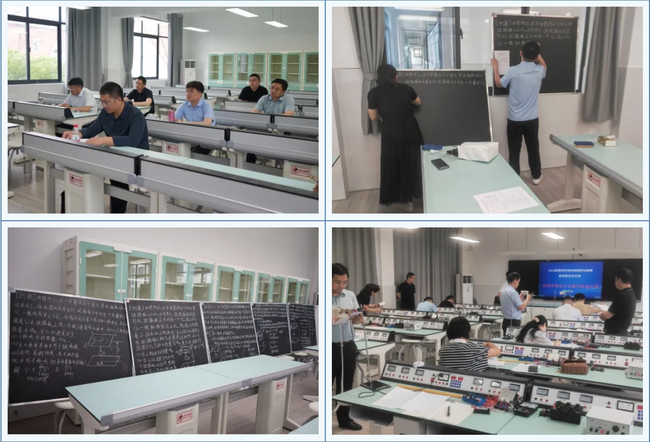 本次大赛包括粉笔字、物理实验设计与操作、即兴演讲、专业知识测试、教学设计与课件制作、模拟上课等比赛项目。