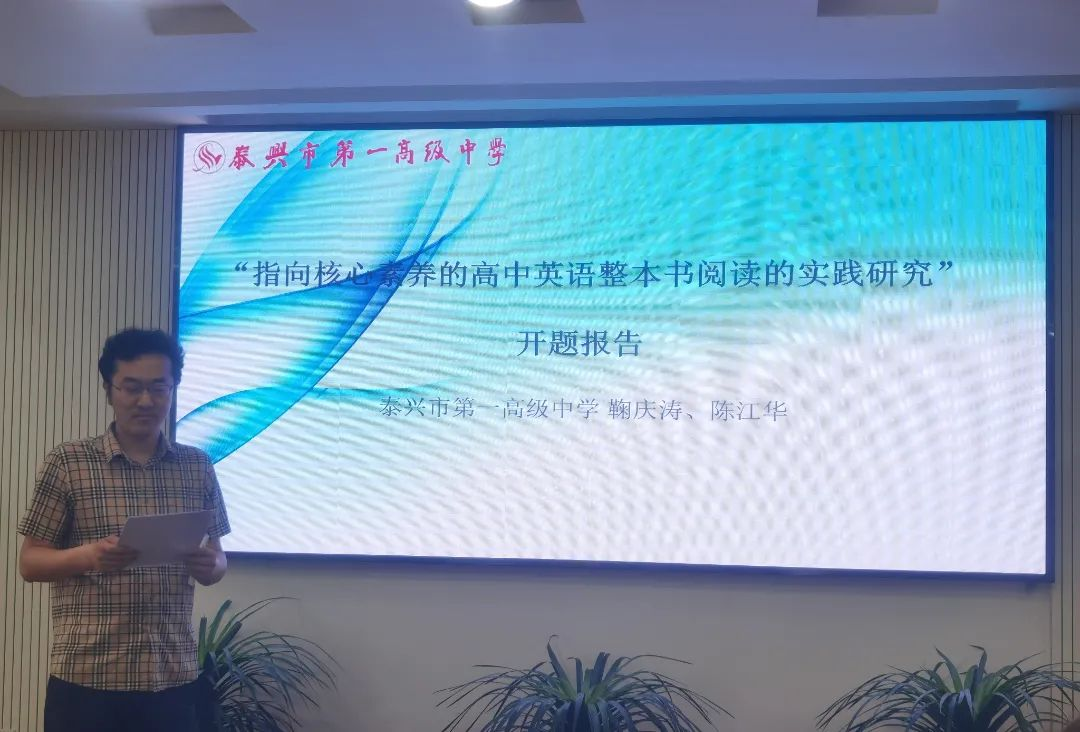 参加开题论证的课题分别是陶惠琴、符爱萍老师主持的泰州规划课题《基于英语核心素养培养的古诗词融入高中英语教学实践研究》,张永丰、张敏老师主持的泰州教研课题《基于数学文化的高中数学课堂教学研究》和鞠庆涛、陈江华老师主持的泰兴教研课题《指向核心素养的高中英语整本书阅读的时间研究》。他们分别从研究背景和意义、研究内容和方法、拟创新之处、预期成果等方面作了详细阐述。