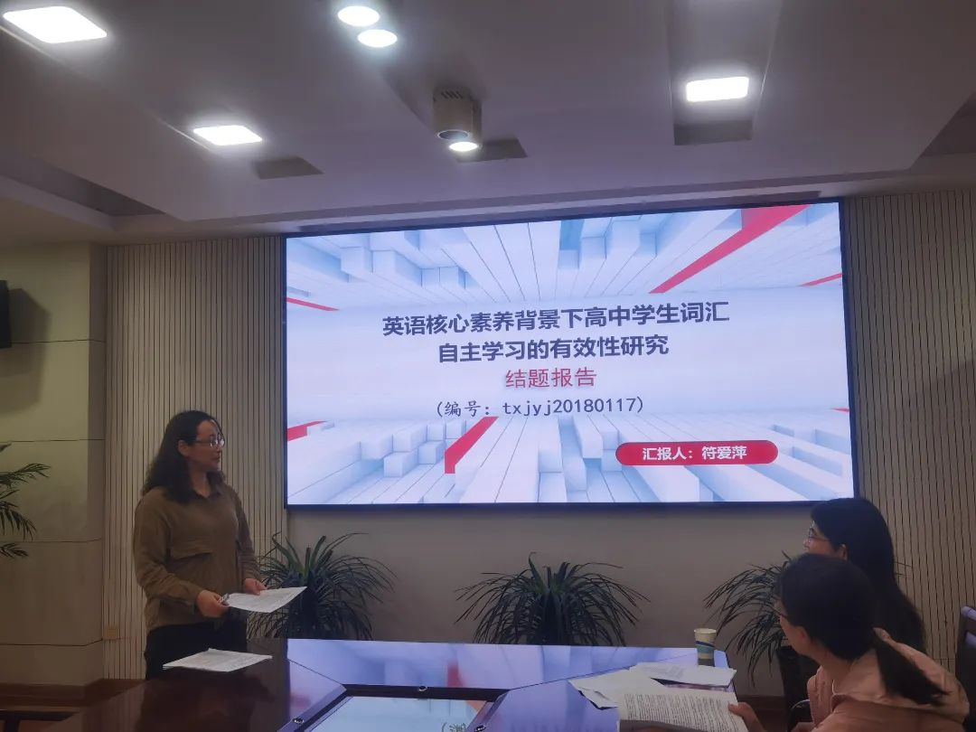 五个课题参加结题论证:分别是泰兴教研课题,我校鞠天龙、朱栋老师主持的《对高中物理高效课堂中新课导入行为的实践性研究》,符爱萍老师主持的《英语核心素养背景下高中学生词汇自主学习的有效性研究》,印桃红老师主持的《基于深度学习的高中数学课堂教学策略的研究》,叶洪老师主持的《构建体育教学系统中“三点”的关系研究》;泰州规划课题,泰兴中学姚澄老师主持的《基于计算思维的高中信息技术教学实践研究》。他们侧重从课题研究过程、课题研究实施的关键阶段、课题总结与反思等方面,将课题组几年来的研究历程与成果向专家一一展示。