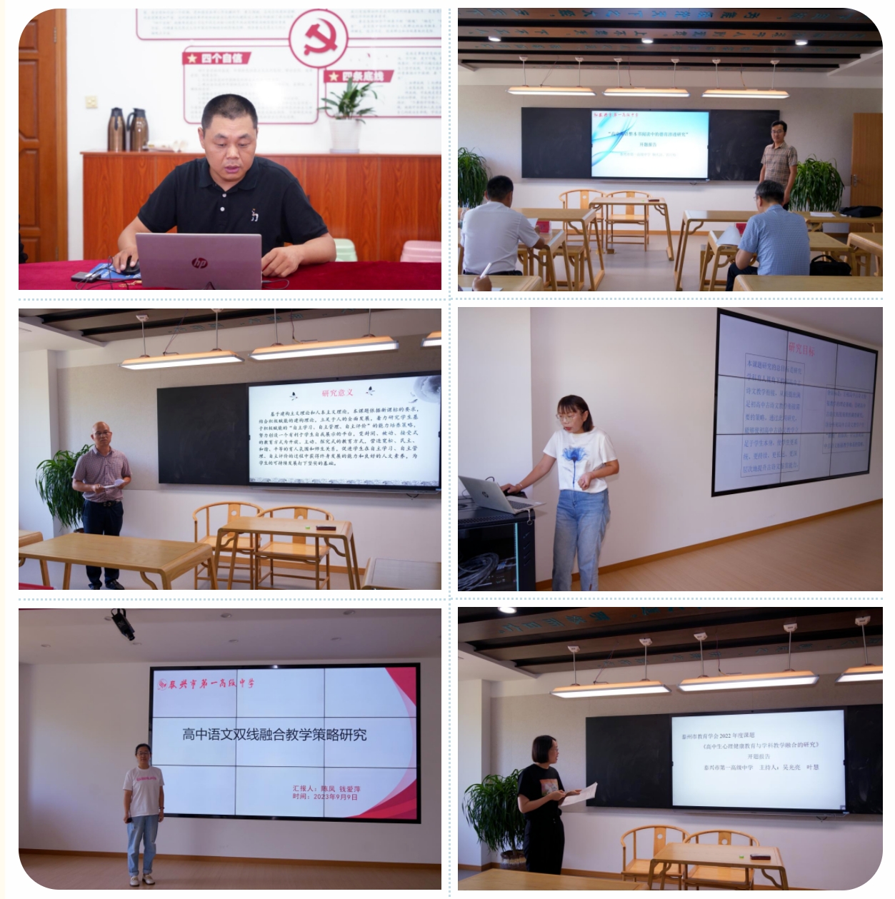 9月9日下午,泰兴一高举行2022年度泰州教育学会课题开题论证、中期评估会。泰兴市教师发展中心教研部主任蔡鑑民,副主任王亚声,研训员刘岩、常海波,泰兴中学副校长吴卫东出席,泰兴市教师发展中心教研部副主任丁忠琴主持。