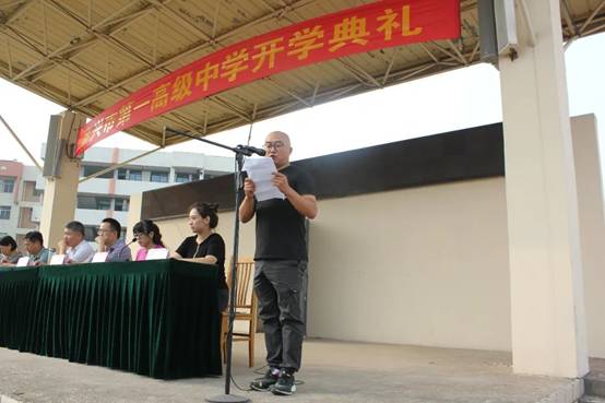 陈亮老师代表高一全体教师郑重承诺:不断自我学习,自我完善, 以一颗赤诚的爱心对待学生和工作,倾我们所有, 全力以赴。