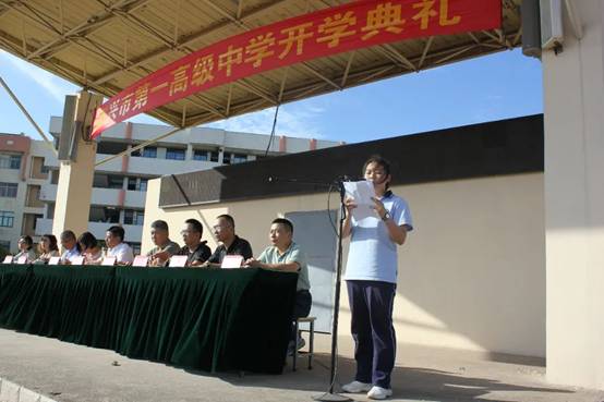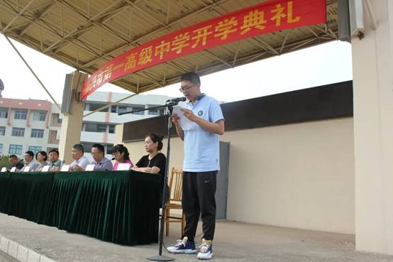 蔡子航同学代表高一全体同学作出承诺:“我们将尊敬师长、自强自律,勤思善问、刻苦学习,开拓创新、锐意进取,以校为荣、为校争光”。三年后,当我们走出一高的大门时,必将同时跨入心仪的一流大学,做到“今日我以一高为荣,明日一高以我为傲”,向母校交一份满意的答卷!
