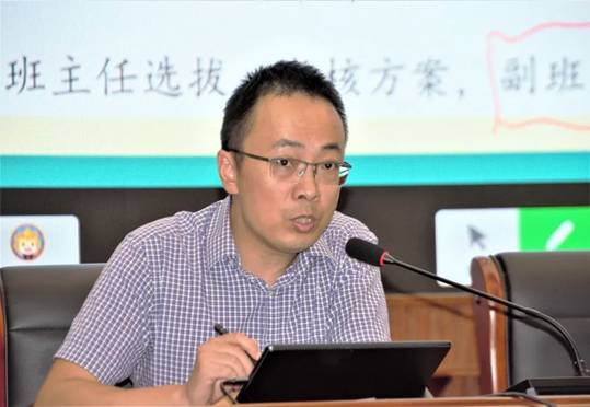 高二年级部秦克主席指出:高二年级全员首先要提高政治站位,坚定“一高再高”信念;其次将凝心聚力,团结一致着力五个维度,在“教”字上下功夫;第三是强化立德树人意识,让所有学生都能得到较好发展;四要与时俱进,在学校现有教育教学管理成功经验的基础上谋求创新。