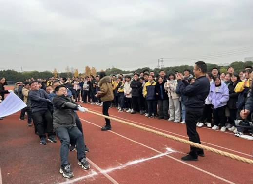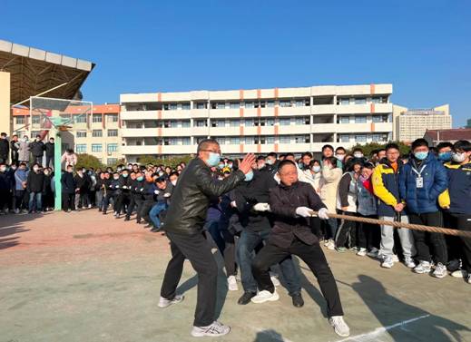 冷风吹,战鼓擂,拔河比赛谁怕谁?决赛现场,绳子在两队之间来回移动,比赛双方憋着一股劲,个个面红耳赤,睚眦尽裂。观战人员也激动不已,恨不能抓一把绳,帮一把力。加油声此起彼伏,随着一次次惊险逆转,现场频爆尖叫声,气氛紧张而热烈。