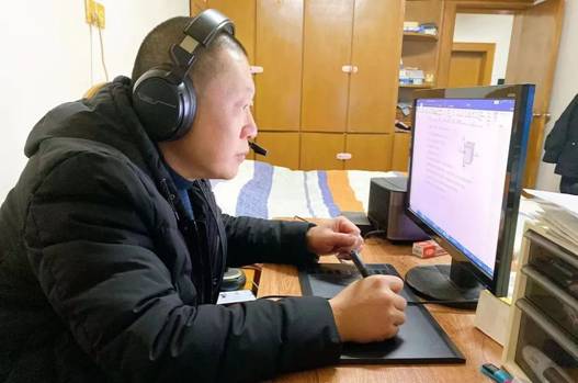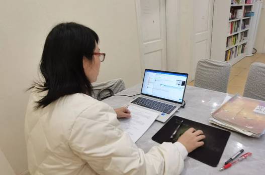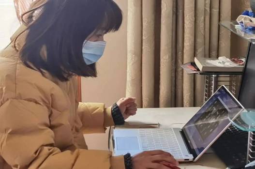 孙娟老师高热引发的头痛和嗓子的割裂感使她难以入睡,然而生病不能停课,还要保证课堂质量。坐在电脑前的她,一如既往打起精神协调好备课组工作,按时开展线上教学活动,给学生展示出最积极的课堂状态。