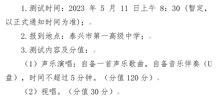 6.领取准考证:领取《2023年泰兴市第一高级中学特长生自主招生专项测试准考证》,时间另行通知。