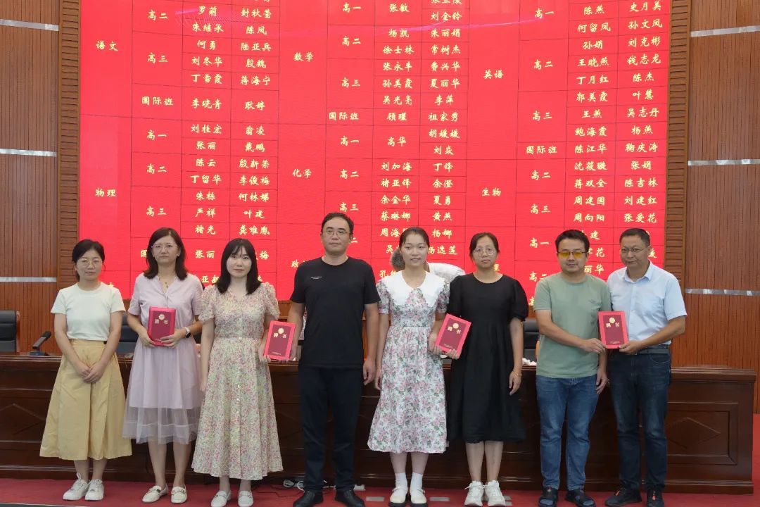 会议以“青蓝”结对仪式拉开帷幕,四对师徒代表接受校领导颁发的聘书,并现场合影留念。