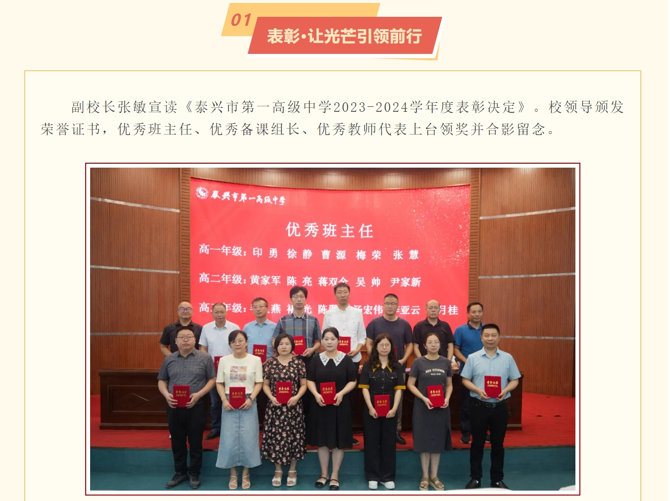 日月更迭,华章翻篇。7月2日上午,泰兴一高在学校报告厅召开2023-2024学年度总结表彰大会。会议由党委书记、校长钱凯主持,全体教职工参加。