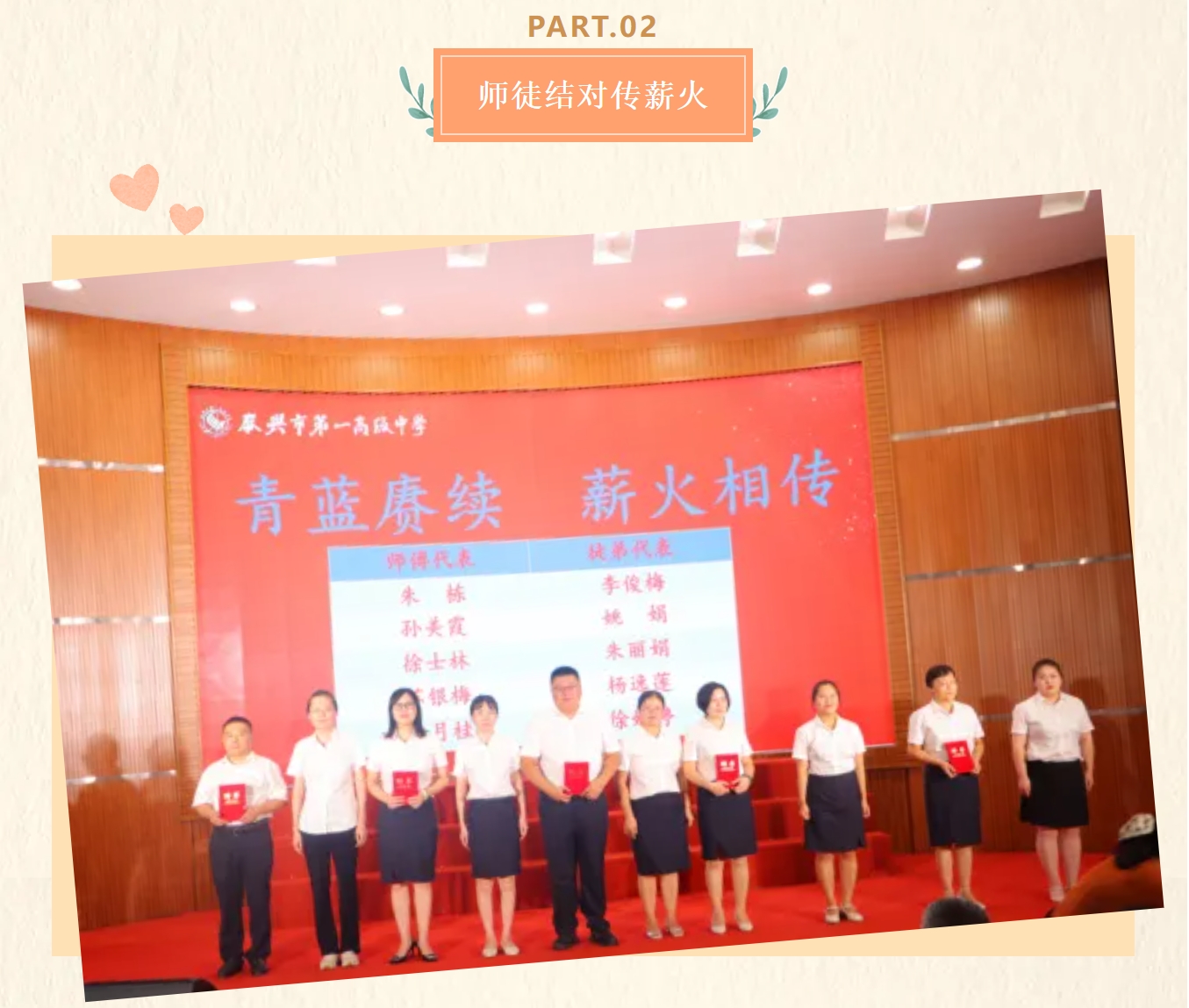 新竹高于旧竹枝,全凭老干为扶持。“青蓝结对”仪式隆重举行,校领导为师徒结对代表颁发聘书。师徒之谊,是缘分也是修行,是延续也是跨越,经验与活力融合,责任与担当传递,金秋播下的种子,必将收获满园的芬芳。薪火相传,同行致远,在师傅们的悉心指导下,青年教师们定能茁壮成长,为学校发展注入新的活力。