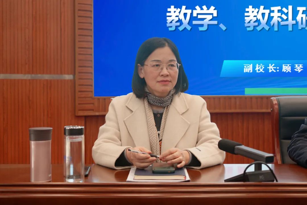 顾琴副校长从核心备课组建设、“生本·生态”课堂打造、“两语”教学推进、教师队伍提质等方面回顾了一年来我校在教学、教科研方面所做的工作和取得的成绩,并对新学期教学、教研工作进行部署:一是深度推进“四新”研究;二是聚力学生自主学习能力培养;三是加大校本研修力度;四是持续推动“新质课堂”建设。