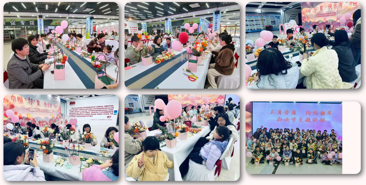 巧手拈春织锦色,诗情花语寄流年。活动尾声,一场“与花共舞”的雅集在小南湖畔展开。玫瑰的炽烈、康乃馨的婉约、满天星的灵动,勾勒出春日的万般风情。女教职工们纤指轻捻,修剪、构思、搭配……原本散落的花枝渐次成画。最终,捧花而立的身影与湖畔春色相映,定格成三月最动人的画面。
