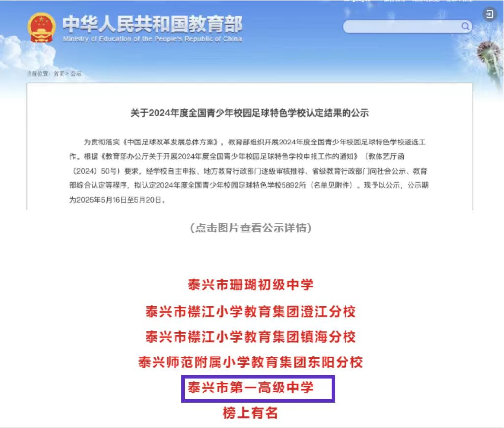 喜 报 近日,2024年度全国青少年校园足球特色学校认定结果公示,我校榜上有名。