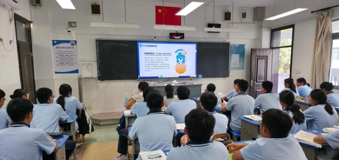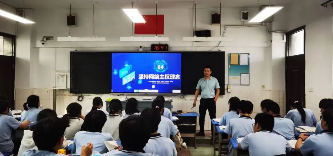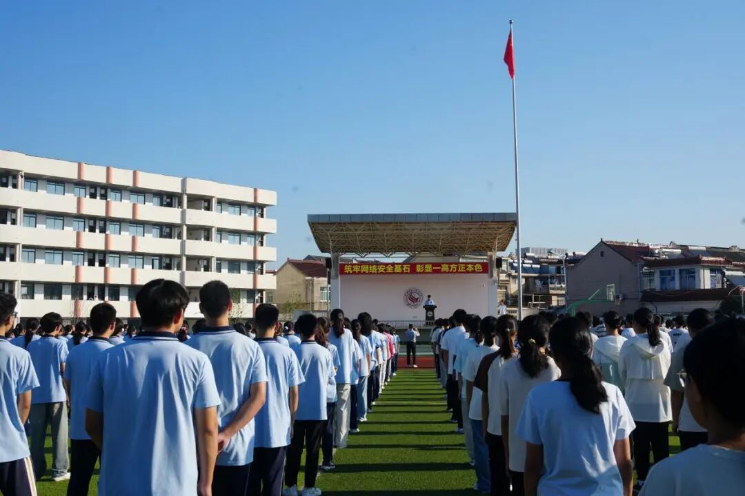 9月15日上午升旗仪式,高二(1)班杨千慧同学国旗下演讲:《筑牢网络安全基石 彰显一高方正本色》。