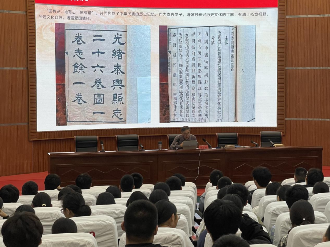 泰州历史学会会员、泰兴市老年科技工作者协会经贸分会会长张留林,赴泰兴一高为同学们作《铭记艰苦历史 传承抗战精神》讲座