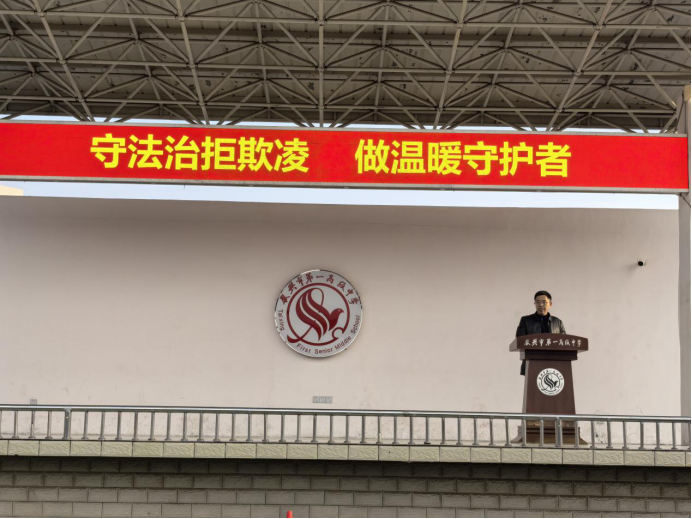 3月9日上午,泰兴市司法局延令司法所所长、我校法治副校长印亚斌作题为《守法治拒欺凌,做温暖守护者》国旗下讲话。