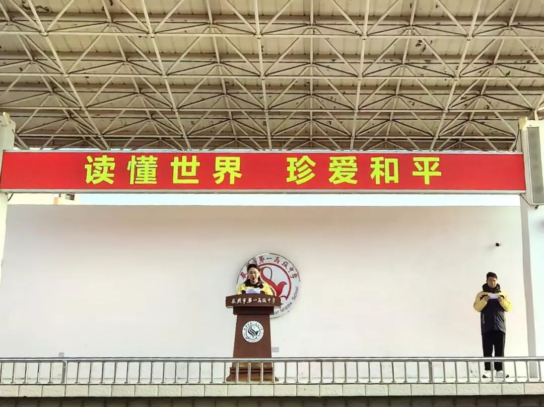 3月23日上午,学校举行“读懂世界 珍爱和平”主题升旗仪式。高二(13)班倪琳同学主持,张璐宇同学作国旗下演讲。